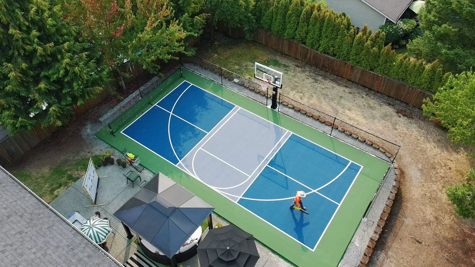 Outdoor courts need to be tough enough to handle everything from intense sunlight to Seattle’s famous downpours. The surface must provide excellent traction, consistent ball bounce, and long-lasting color. The two most popular choices are acrylic coatings and modular tiles.